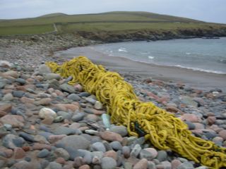 To the cold turkey! Oh, and that creepy large yellow monster on the beach is, believe it or not, hundreds of fathoms of rope, probably dumped deliberately from a fishing boat.