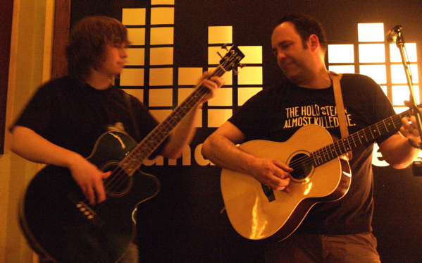 The pictures show, first of all James, me, Malachy Tallack and Steven Laurenson outside The Famous Bein Inn in Glenfarg, and then James and me on Sunday night at the Woodlands Beanscene in Glasgow.