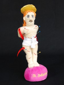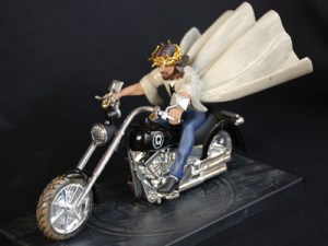 I can’t help feeling that the St Sebastian pin cushion (buy here)is actually a rather clever joke…but I fear the Christ on a Bike motorcycling Jesus – one of a series of ‘contemporary’Christs showing Him skateboarding, surfing, rodeo riding(!), etc – is aimed fairly and squarely at the heartlands of fundamentalist America…buy it here if you must.