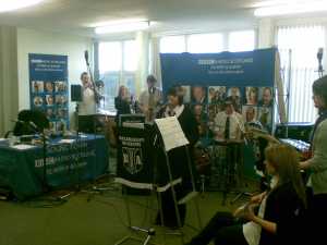 The school soul band rehearse for today's TM show.