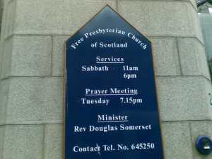 The other two pictures show two churches, immediately opposite one another. One, like many disused kirks in Aberdeen, has been converted into a club and bar called, well Babylon. The other houses a Free Presbyterian congregation. It seems rather…Aberdonian.