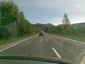 This is just an example snap of the trip south on the Inverness-Perth stretch of the A9, which I’ve been driving for 35 years and remains a nightmare of frustration and terror, no matter how much meditative calm I try to instil in myself. Caravans! I will never have one again. Camper vans! I’m selling Gloria forthwith. Motorcyclists! Are they/we all deranged? People in big off-roaders who think they can simply push other people out of the way! People in open-top sports cars wearing ridiculous hats to avert frostbite (the people, not the sports cars).