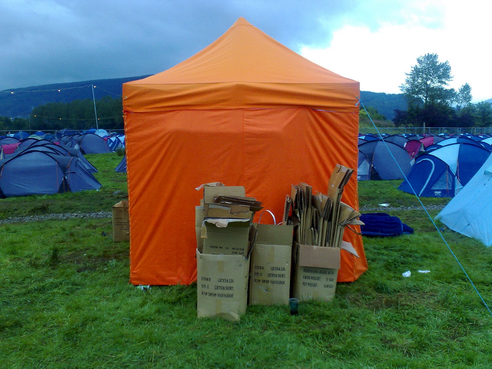 Here’s the deal: It’s over £140 for a Hydro Connect weekend camping ticket, £20 for parking, an extra £75 if you want to bring a camper van. A programme’s an additional £8 and Tangerine Fields charge a whopping £470 for a six-man tent, already erected, with air beds and sleeping bags (but no pillows). Ostensibly with special toilets and showers, which turned out to be nonsense. In other words, Hydro Connect, the way we did it, was an expensive treat (confession: connections wangled me a free parking ticket; still, this was a heavy investment). Would it be worth it?