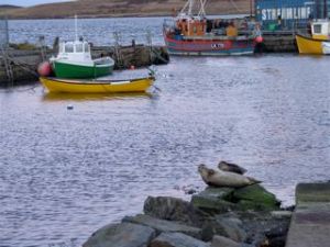 Some scenes from Shetland over the past few days. Those seals are just a few yards from the back of the Toll Clock shopping centre in Lerwick. They’re virtually tame. The red sky was at dawn on Saturday (shepherd’s/sailor’s warning, and how). It was a day of brutal weather. That glint of sunshine shows the community I live in, Hillswick, and in particular the St Magnus Bay Hotel. It’s on a narrow spit of land between two beaches, and our house (some 300 years old) is built on what seems to be reclaimed beach. The other picture of the hotel (from the side) is taken from the West Ayre. The 1960s house directly facing the camera is the doctor’s house, where we lived in the late 1980s. And then there’s the West Ayre itself, late this afternoon, as the light was fading. Definitely surfable.