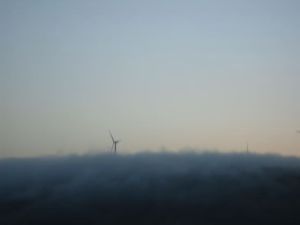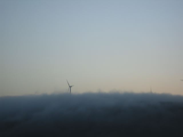 But, as Susan and I drove north from Lerwick, the lovely warm weather was chilling down into spectacular fogginess. The Shetland Aerogenerators site was, as you can see, becoming seriously fluffified, and soon Sumburgh was haar-bound. By which time Martha, plus various other school pupils and teachers, were in Kirkwall. Stranded.