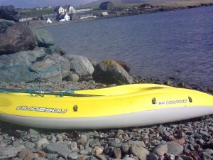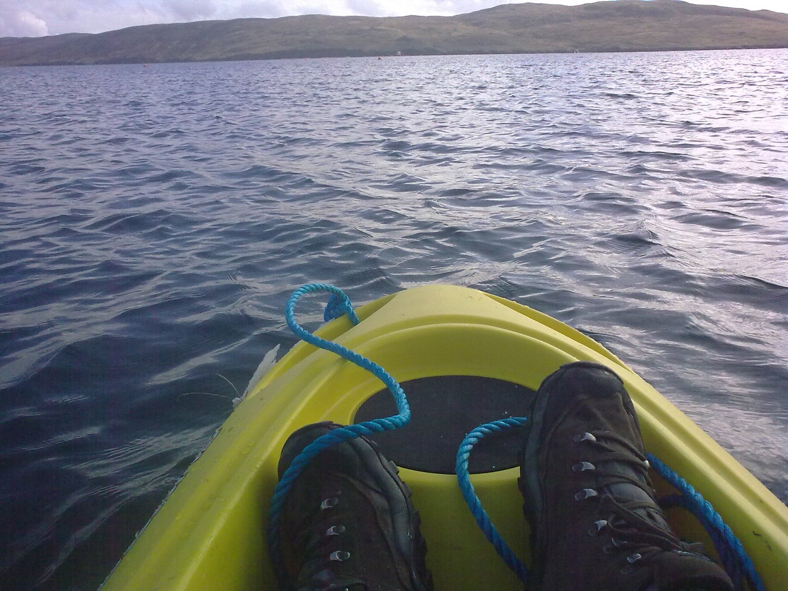Half an hour later, regretfully, having been thoroughly investigated at close quarters by two seals, I hauled the wee yellow boat ashore. It works! It’s great!