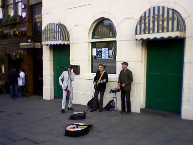 It was slightly disconcerting to arrive outside the Playhouse and find one Malcolm Ross, ex-Orange Juice, ex-Josef K, ex-Aztec Camera and possibly the most influential Scottish guitarist ever, busking on the pavement with his fellow Bum-clocks, including the irrepressible Tam Dean Burn on vocals and ex-Fire Engine Russell Burn on drums. Sounding great and funny, too. Check out their Myspace page at http://www.myspace.com.burnbrosross