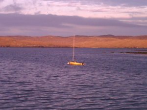 At last! The dinghy is in the water and appears to float! For no reason other than I love the book (and the word), she is called Cryptonomicon. An old Kestrel fibreglass sailing boat, complete with tattered sails and, my pride and joy, an original British Seagull 2-stroke engine (runs on an amazing 10-1 petrol-oil mix.