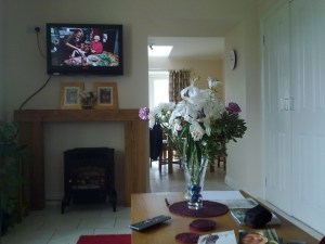 Lunch at the Ploughman’s in Wigtown (very good – and they’re sponsoring the Broons gig) and Dave and I lay down some ground rules for the show. Then, armed with a life-size cut-out of Maw Broon, we spend an hour chatting about Dudley D Watkins, RD Low and Dave’s own career (writing the Broons since 1962. Spot Brian Keenan in the signing tent. Then it’s off to Glasgow up the Queen’s Way from Newton Stewart to New Galloway and Ayr. It’s an absolutely beautiful drive.