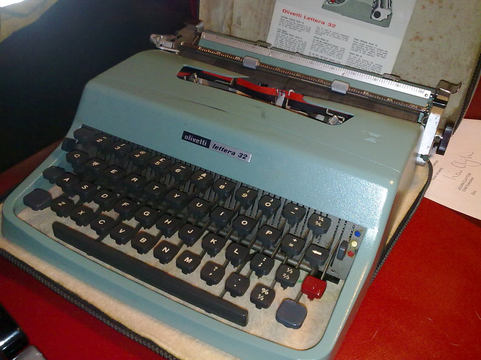 McCarthy’s (broken!) machine was sold at Christie’s for $254,500, authenticated by the author and all proceeds going to charity. He’s got a new, identical Lettera, which apparently cost $20…