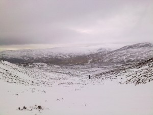 Near Comrie. Cheers to Dave Hewitt for putting up with my general feartyness and lack of fitness. About 150 feet from the top, having seen both ptarmigan and lots of mountain hare (white in winter!)I had had enough. Warbeck’s very nice crampons didn’t stay on, and I was running out of energy.