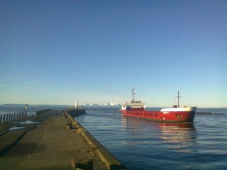 Gorgeous day down on the south Ayrshire coast, with Arran looming like something transplanted from the Alps. Ayr Harbour lost its fishing fleet to Troon years ago, but it still has ships coming to and fro, mostly dealing with minerals, salt, scrap iron and wood as far as I can see. Ayr beach has so much scrap timber you could run an entire community of stoves for winter after winter, and never pay a penny. It’s all I can do to stop myself gathering in the logs…