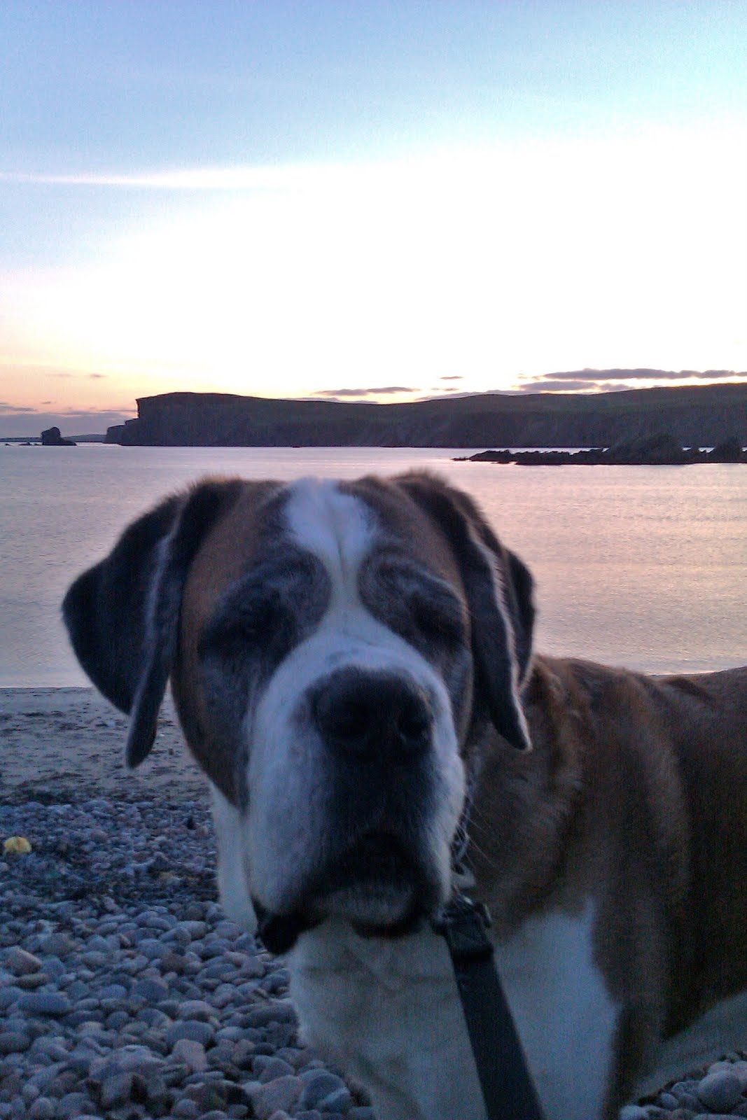 Other hounds are available. Actually, other hounds are available here in Greater Hillswick, and a proper Wolfhound/Great Dane cross at that, bouncy and inquisitive and not best friends with Lulu, the ageing and irritable (with other dogs) St Bernard in the picture.