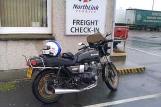 Sold on eBay, my last motorbike. Today was my final powered ride, 35 gruesomely cold, wet and windy miles from Hillswick to Lerwick so I could check the bike in as freight for Aberdeen. Tomorrow, all being well, a man called Gordon will ride away on the old Suzuki GS1000G. It will be out of my life.