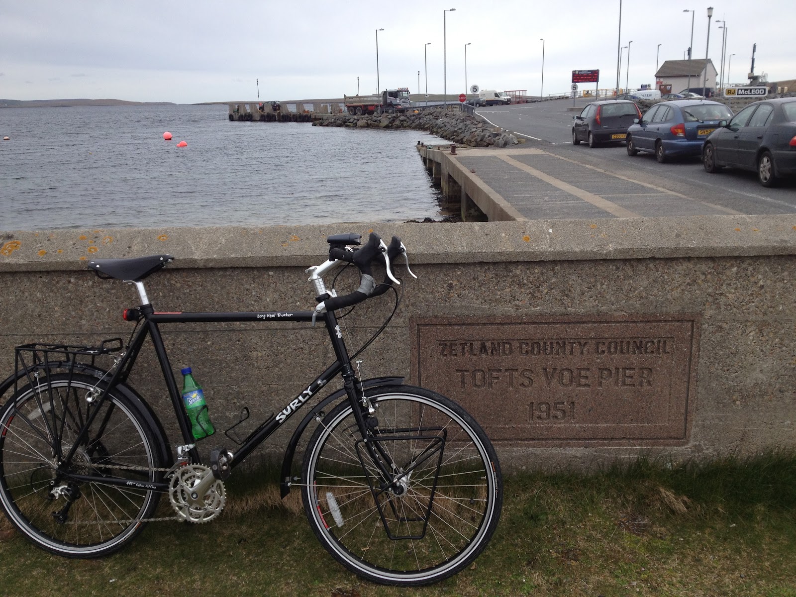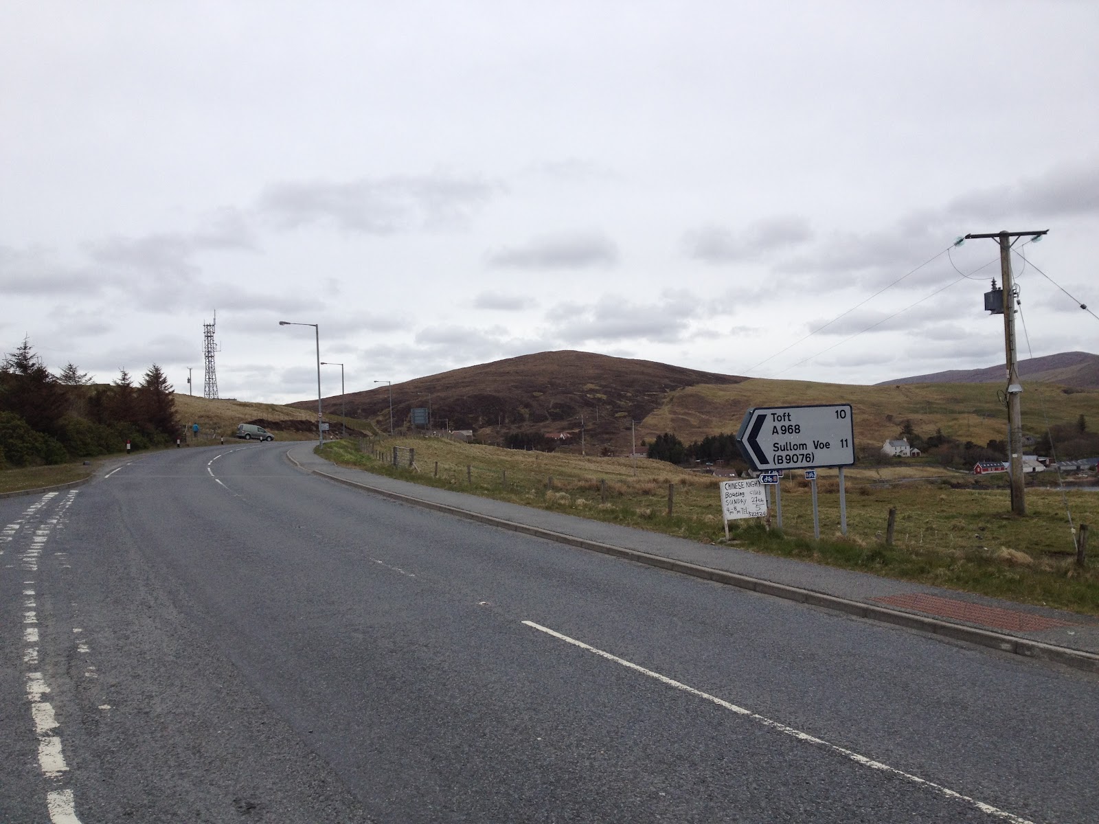 Anyway, I need to cycle the Shetland section of the route before I go off to start the bit awa’ sooth. That’s 18 miles from Lerwick to Voe, 10 from Voe to Toft (Yell ferry terminal – there are three big islands in the Shetland group, Mainland, Yell and then Unst at the top) then the 18 miles across Yell. Today I did the 10 miles from Voe to Toft, with another 13 added in for training purposes (actually, to get back to where I’d left the car).