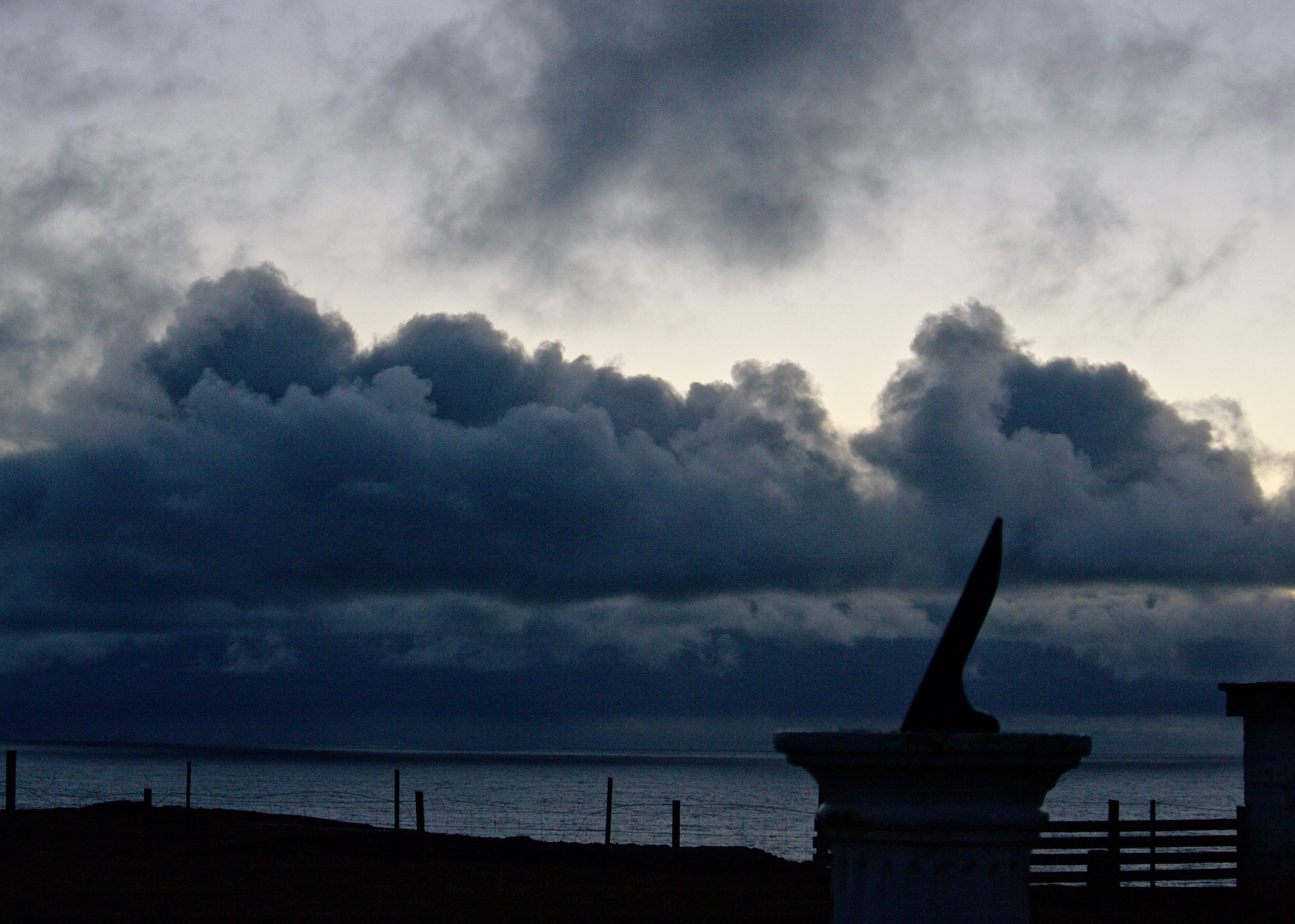 A January Sunday in Shetland, beyond 60 degrees north. I drive up to the Eshaness lighthouse, one of the Stevenson masterpieces, about six twisty miles from our house. On the edge of Shetland’s most spectacular cliffs. On the edge of the world. Ultima Thule. Lights glint on the horizon from the Clair oil field, 47 miles to the north west.