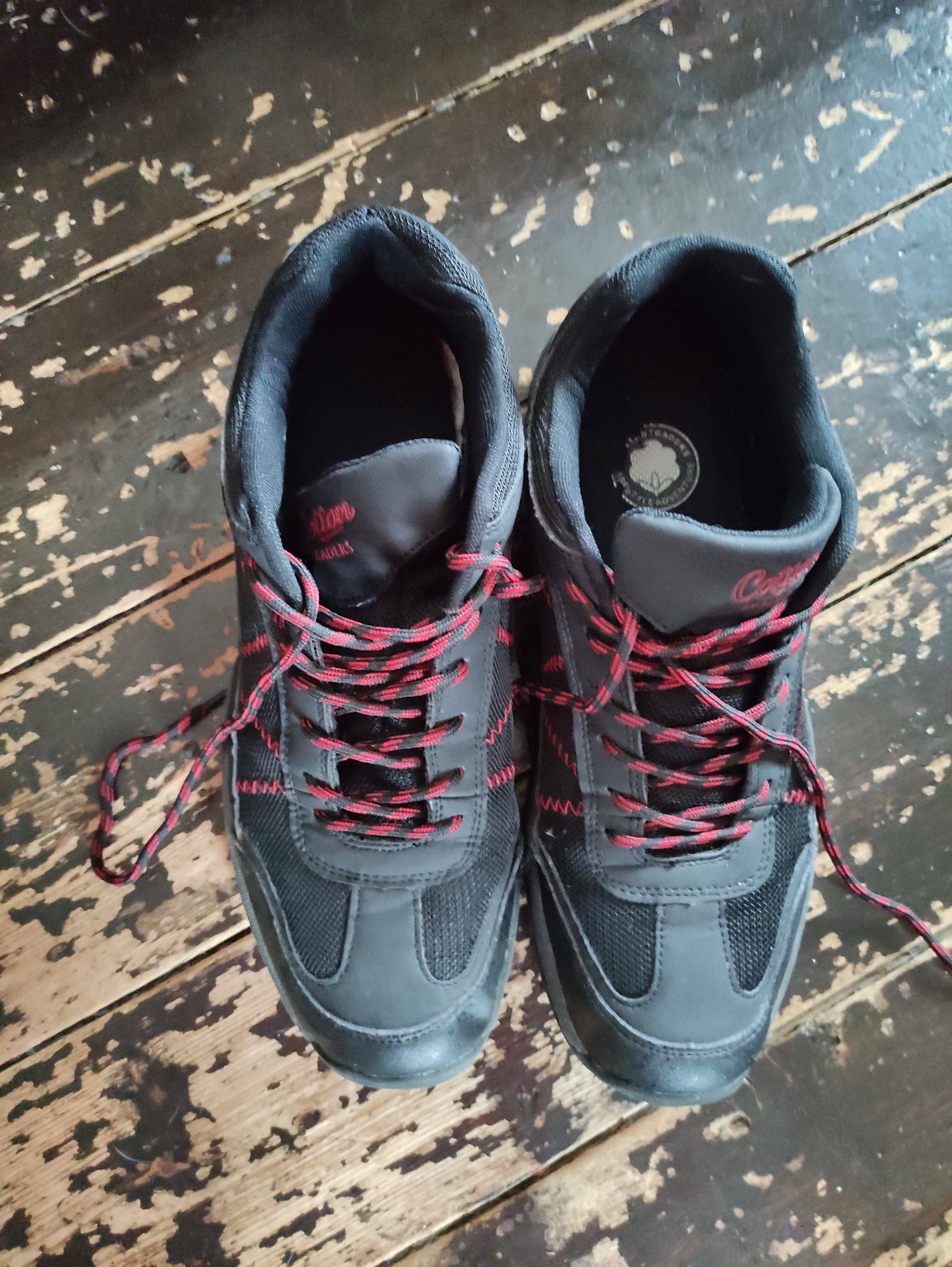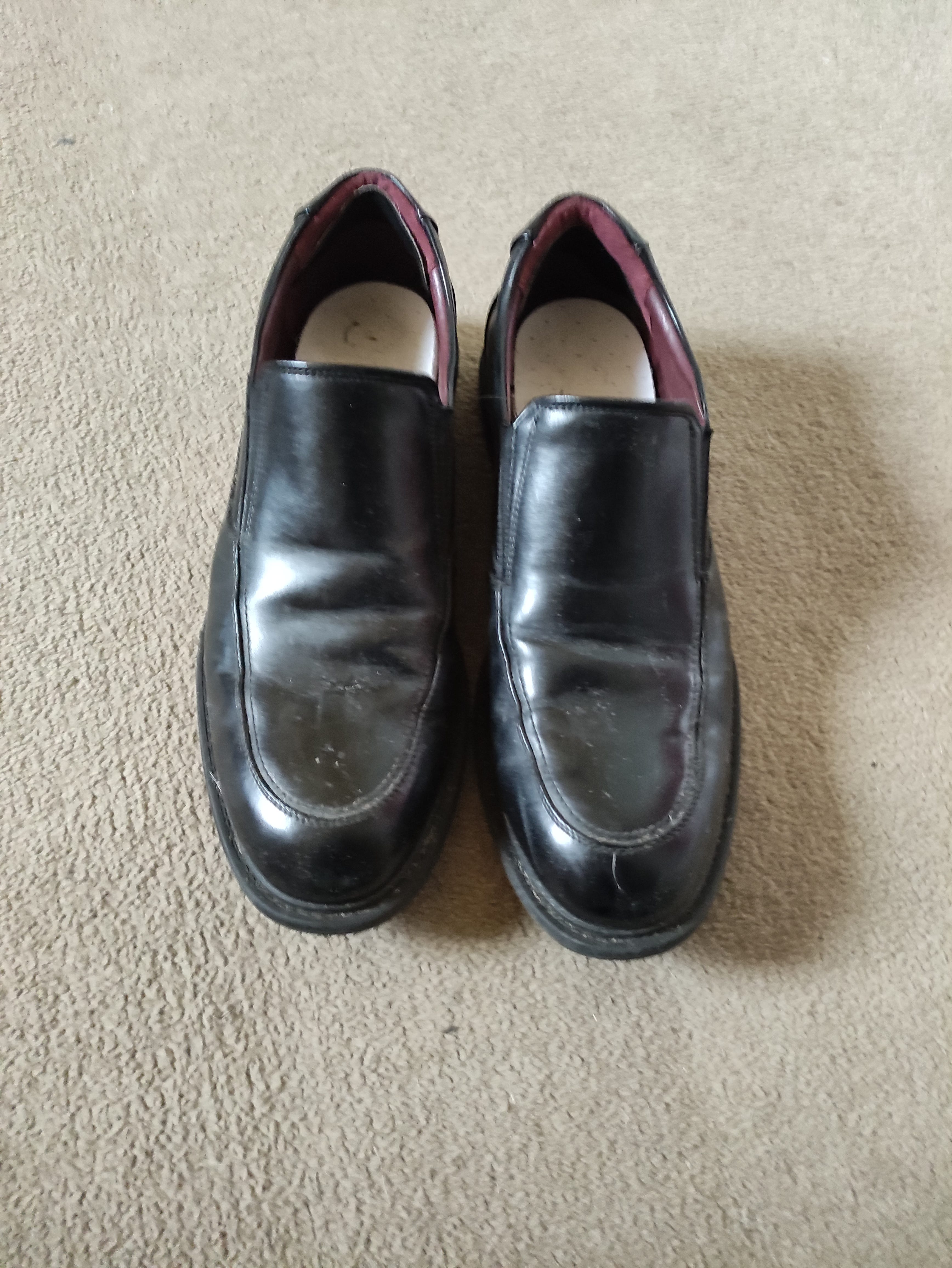 His clothes. In the end, some of those jackets fitted me but I just couldn’t wear them. They went to the charity shop. Shoes. Actually, it’s my own I have trouble with, not the pair of his virtually unworn trainers I kept. Am wearing now. For some reason, they’re slightly too big. Maybe I’ll grow into them.