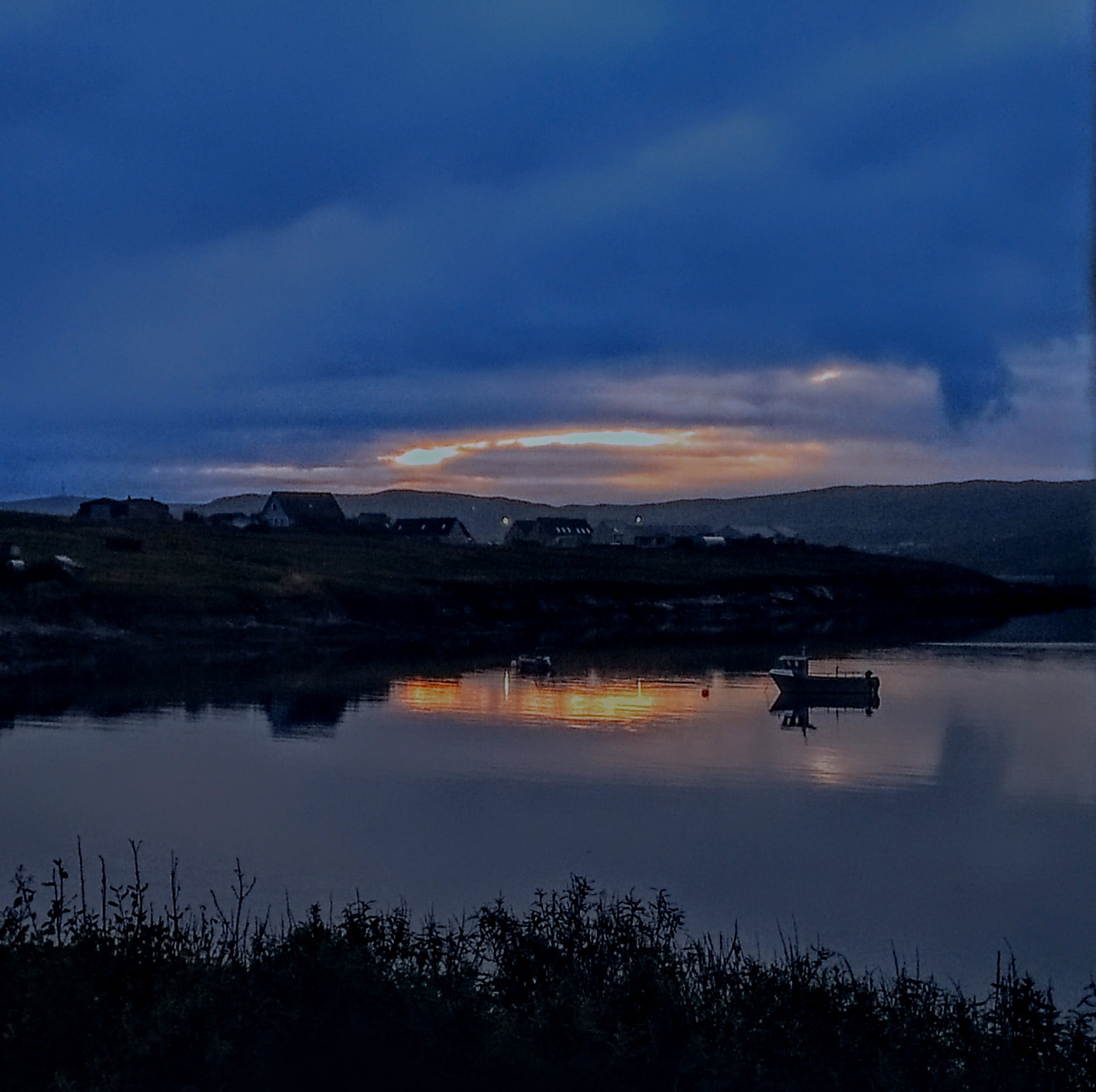 Earlier, there was a real fog, sea mist, haar. Common at this time of year. It shuffled in from the sea and then, as the evening cooled, suddenly the air clarified and everything was pin-sharp and yet dimming in the blue half-light of a northern summer. Night and day blur into one, the simmer dim, the midnight sun.