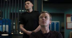 The next half hour is full of portents and pregnant pauses and a lot of socially distanced chat. Loganberry’s cowering in his cell and while he won’t be charged, he’s informed that he’s mentally ill, and he could get done for killing his sergeant in Iraq. And so it’s farewell, Stephen McCole, your Scottish BAFTA nomination for actoring awaits.