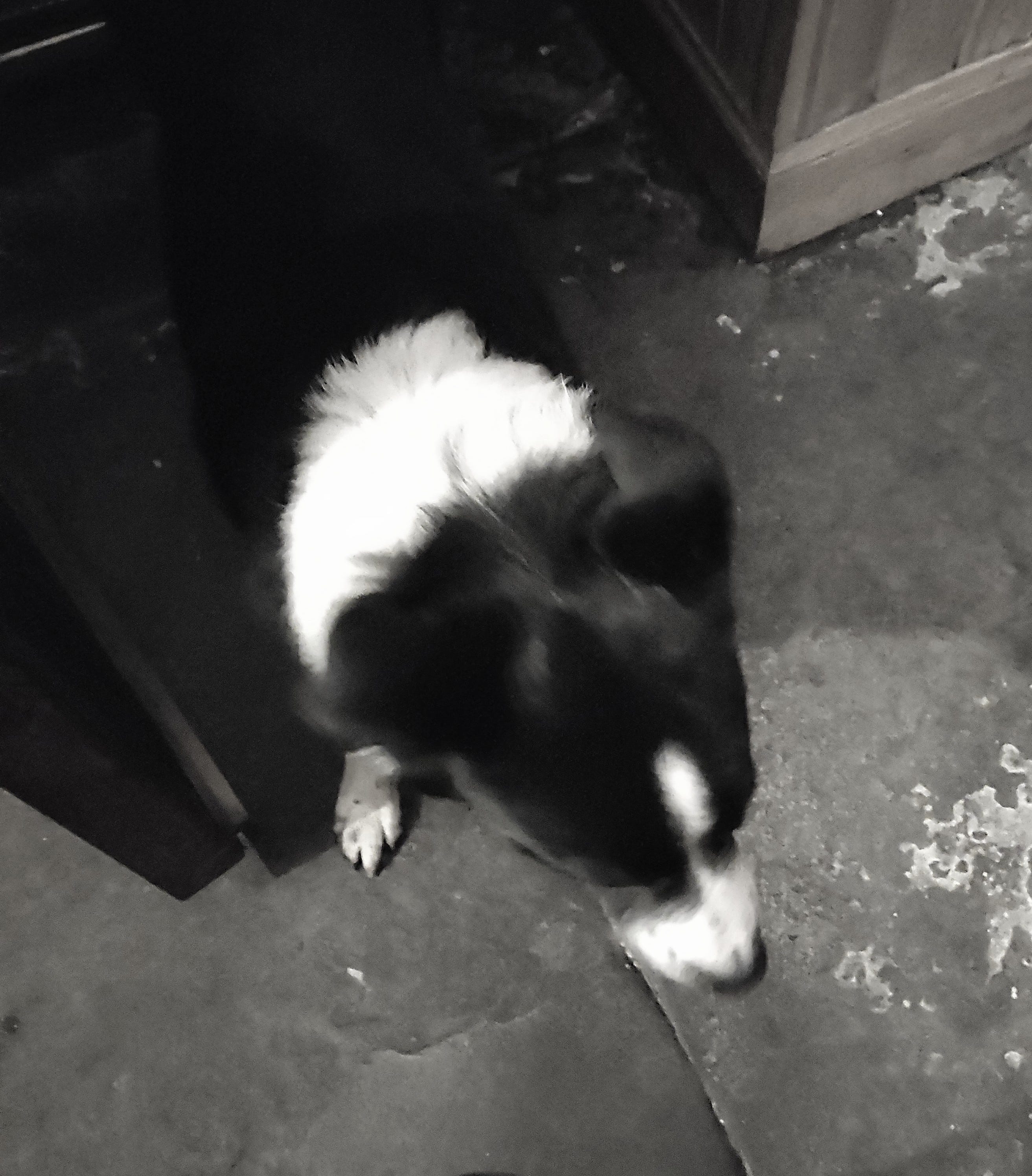 No sooner had I mentioned sheepdogs than Bad Brad the Great Escapee (from the local farm) arrived, howling piteously above the wind and setting Old Fat Dex, his pal, off in a flurry of sympathy barking.