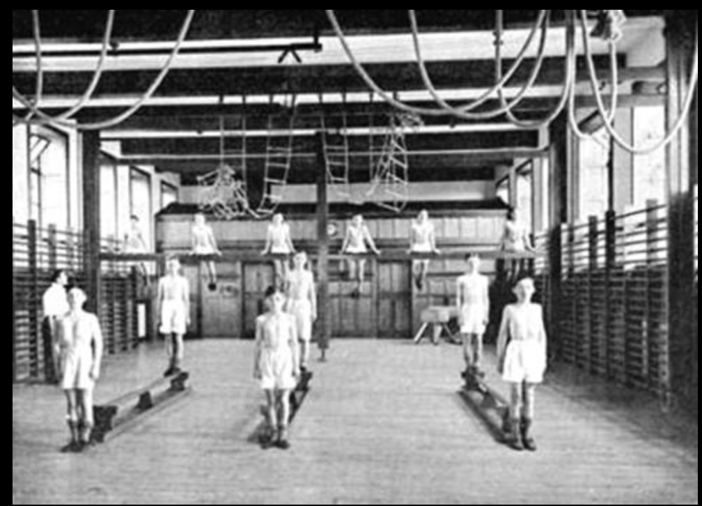 Gawky, lanky unmuscled streaks of existential misery like myself (shorts, bare top, no t-shirts allowed) would strain just to get their feet off the ground. Wallbars, dangerous wooden climbing ladders, surrounded the room, which always reeked of decayed Dunlop Green Flash gutties or the Woolworth equivalents. Well-developed classmates would scamper up and around, swinging their death-defying way to teacherly approval. Muttering their Tarzan whoops. I hated them.