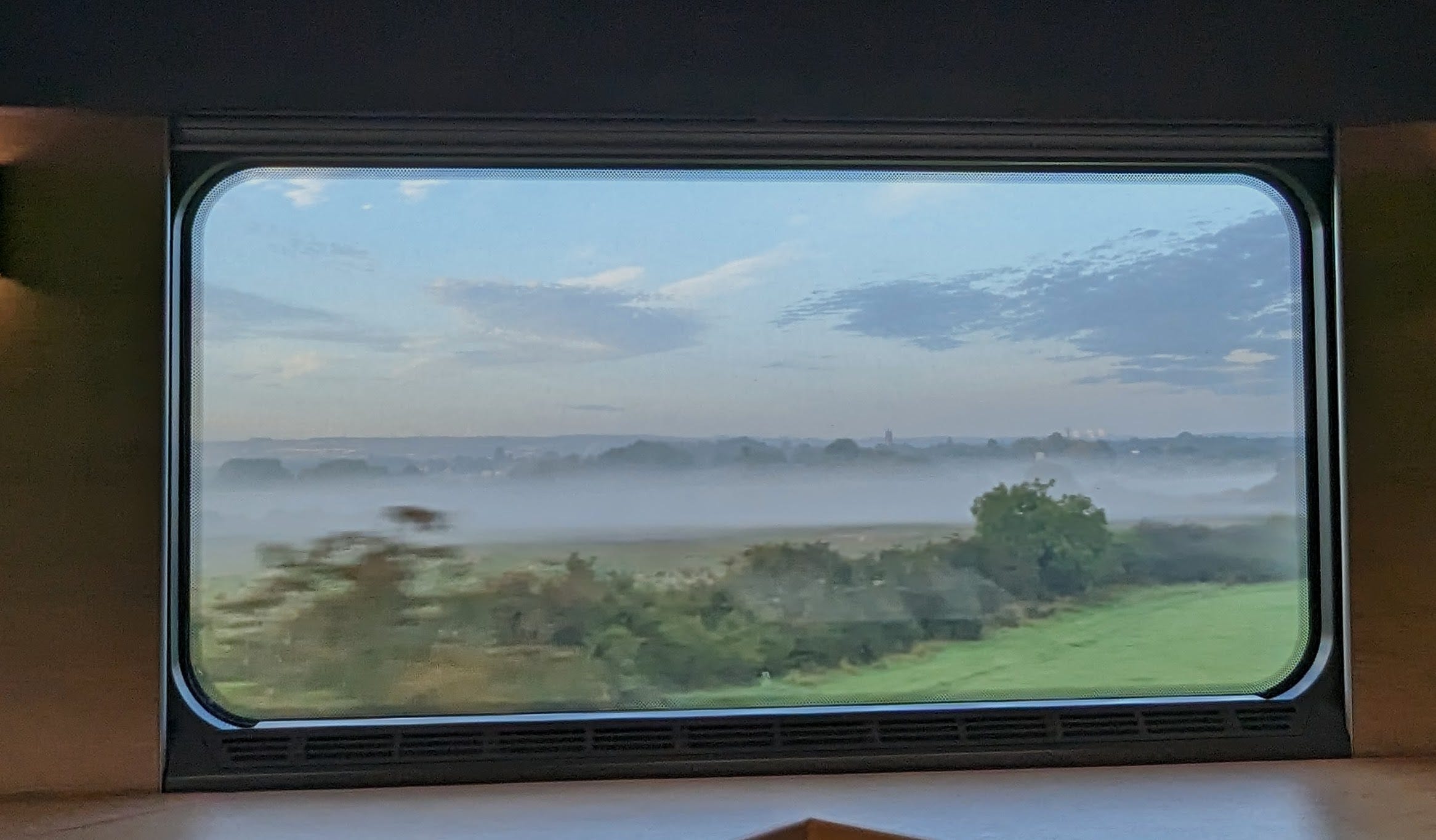 Back across London, it was a guddle getting onto the Caledonian Sleeper, but with both Mag and me being train buffs, there was the considerable pleasure of a last drink in the buffet car as we pulled out Euston. A Club Class cabin has two bunks (this is the accommodation Prue Leith recently complained about at great length) and the smallest combined shower/toilet you can imagine. It was a bumpy ride back up to Glasgow but we did sleep, sporadically. “Full Scottish” breakfast in the lounge car featured a pink and red Lorne Sausage (everything is either microwaved or steamed) but the coffee was welcome as a gloriously misty morning unfolded. Lovely staff, but my advice is to go for fruit and porridge.