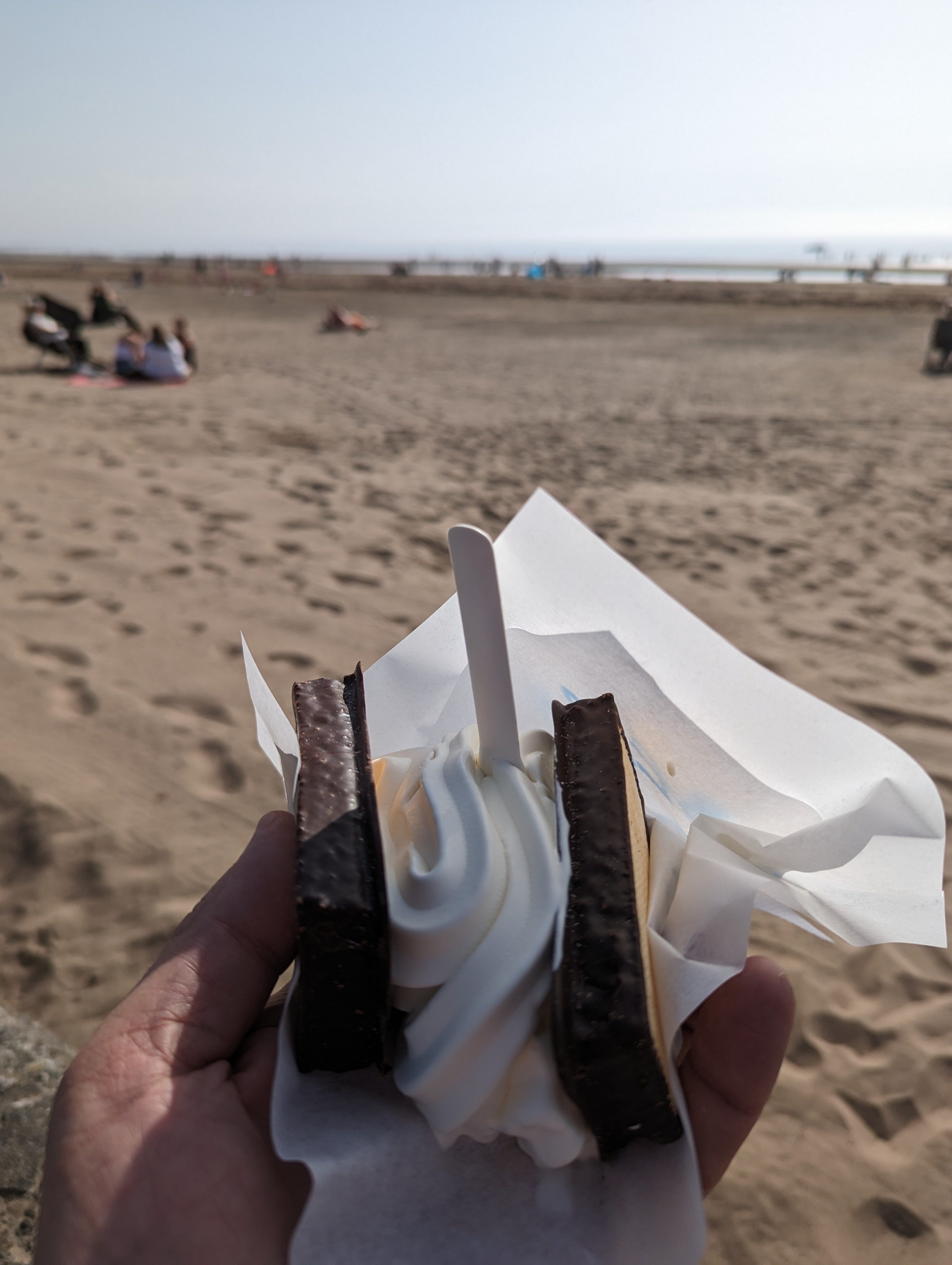 On Main Scotland for a while now, as Susan has holidays and will be down shortly. Today, Friday, I unfolded the Brompton and cycled to the beachfront source of Double Nougats, pronounced Nuggets. Delicious. See above.