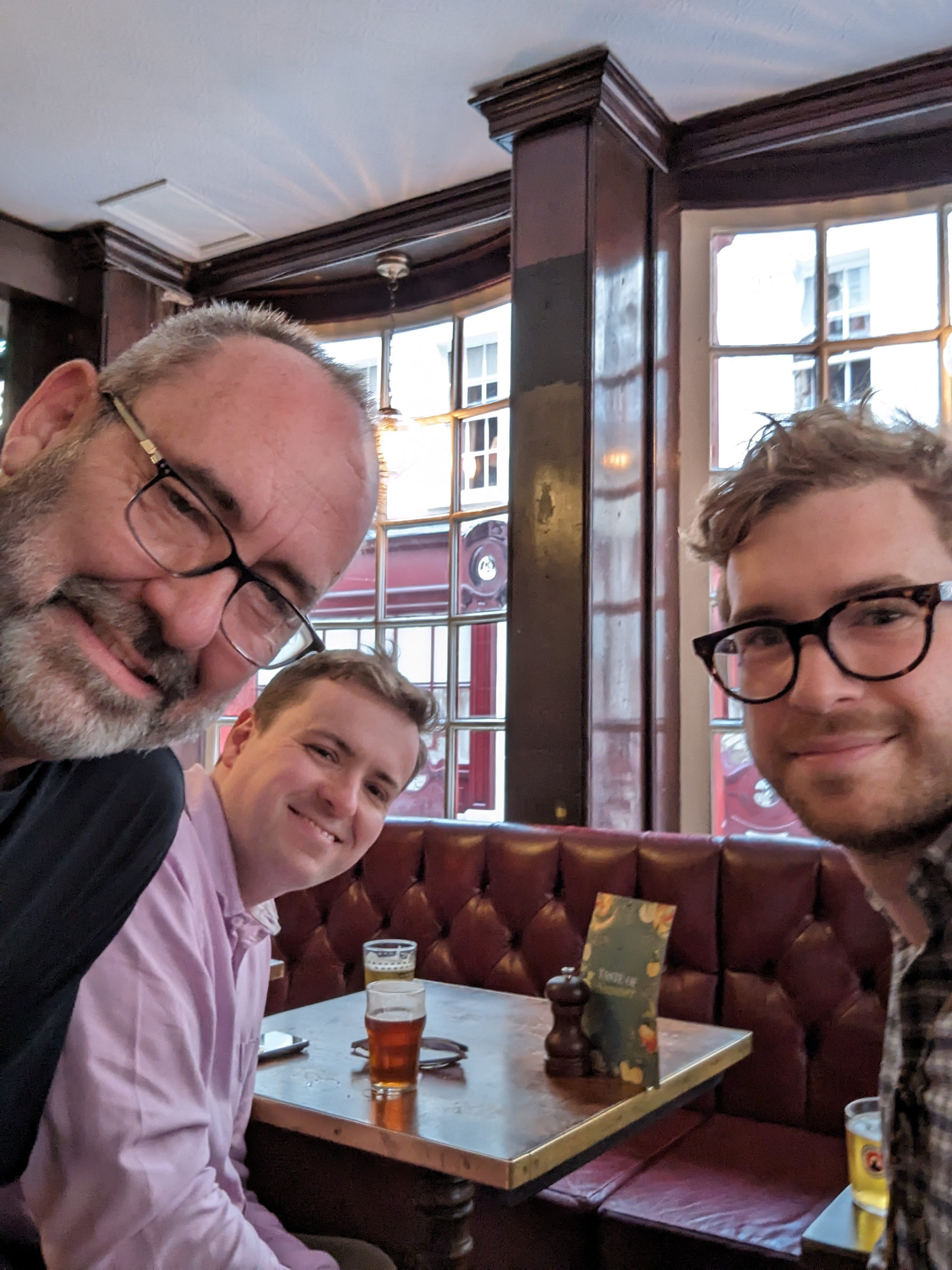 Wednesday morning I had breakfast at Gordon Street Coffee (dodgy, flaccid bacon roll; not as good as it was last time I was there), met my son Magnus and then we caught the Avanti West Coast to London, straightforward and on time. London sweltered and boiled. A pint in the ever-reliable Euston Tap and then off to Shepherd Market by Underground. It was like descending into the hottest tunnels of hell, but in the air-conditioned chill of a pub called The Chesterton we met Mag’s brother James, had a superb assortment of snacks and wine at Noble Rot, and prepared for the Guild of Food Writers Awards ceremony.