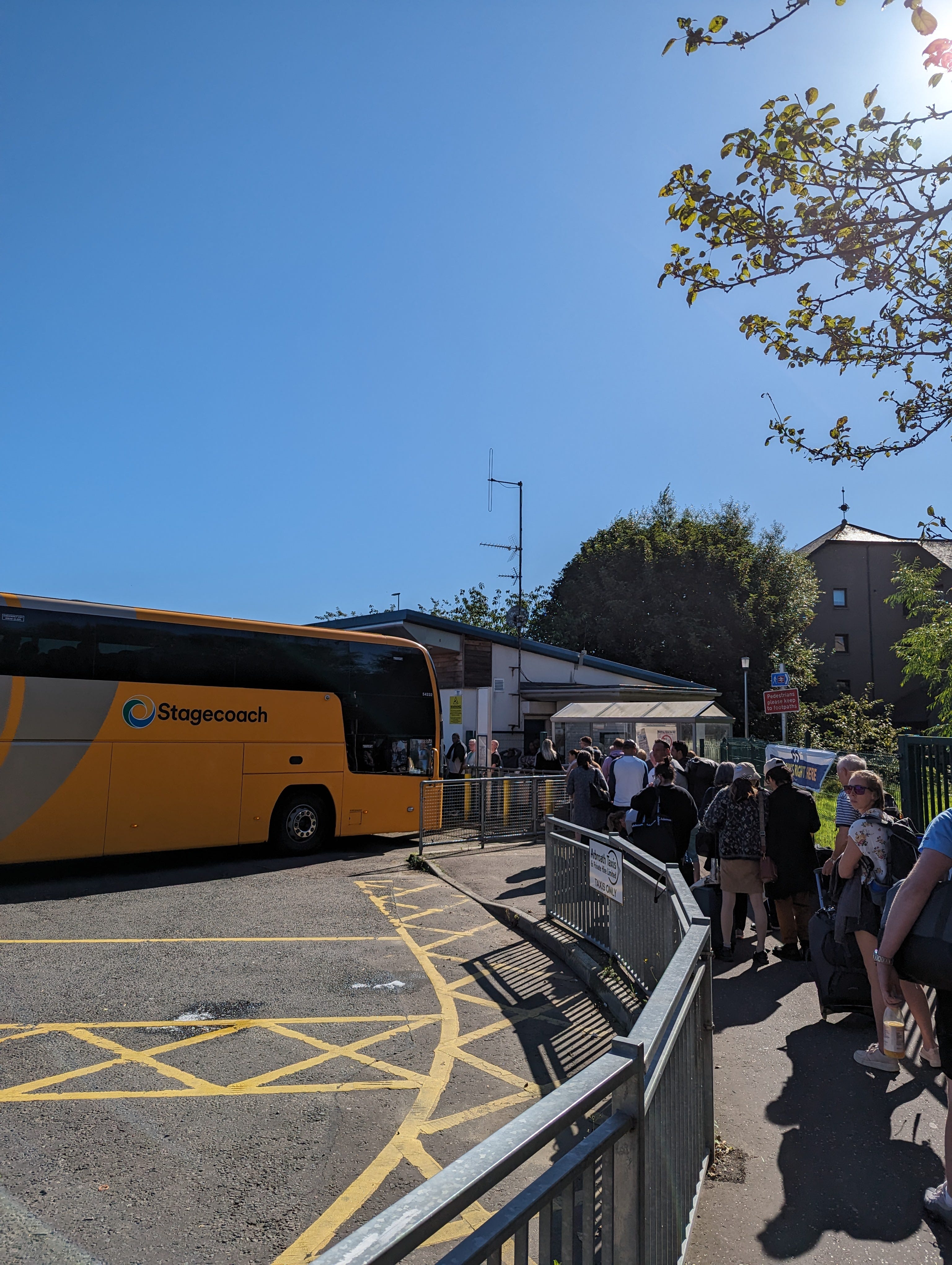 The next train to Glasgow was halted at Arbroath and basically, the line closed for the rest of the day. So for me, it was a frenzy of overheated or icily air conditioned buses to Dundee and thence (eventually) Glasgow, with a lot of faffing about in between. Scotrail, Stagecoach and Citylink staff were all very helpful, but it was 4.00pm before I got to the Dear Green Place. Which was grey and dusty