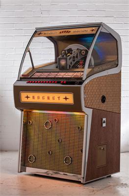 We do have a Jukebox. In fact, we have two. There’s an old restored Rockola that plays seven-inch vinyl singles, and a very special one. It’s new, made by Sound Leisure in Yorkshire and called the Anniversary Rocket. They build them to order and the thing is, it plays 12-inch albums. Vinyl of course. There’s nothing digital here. Only records at the Broken Record…