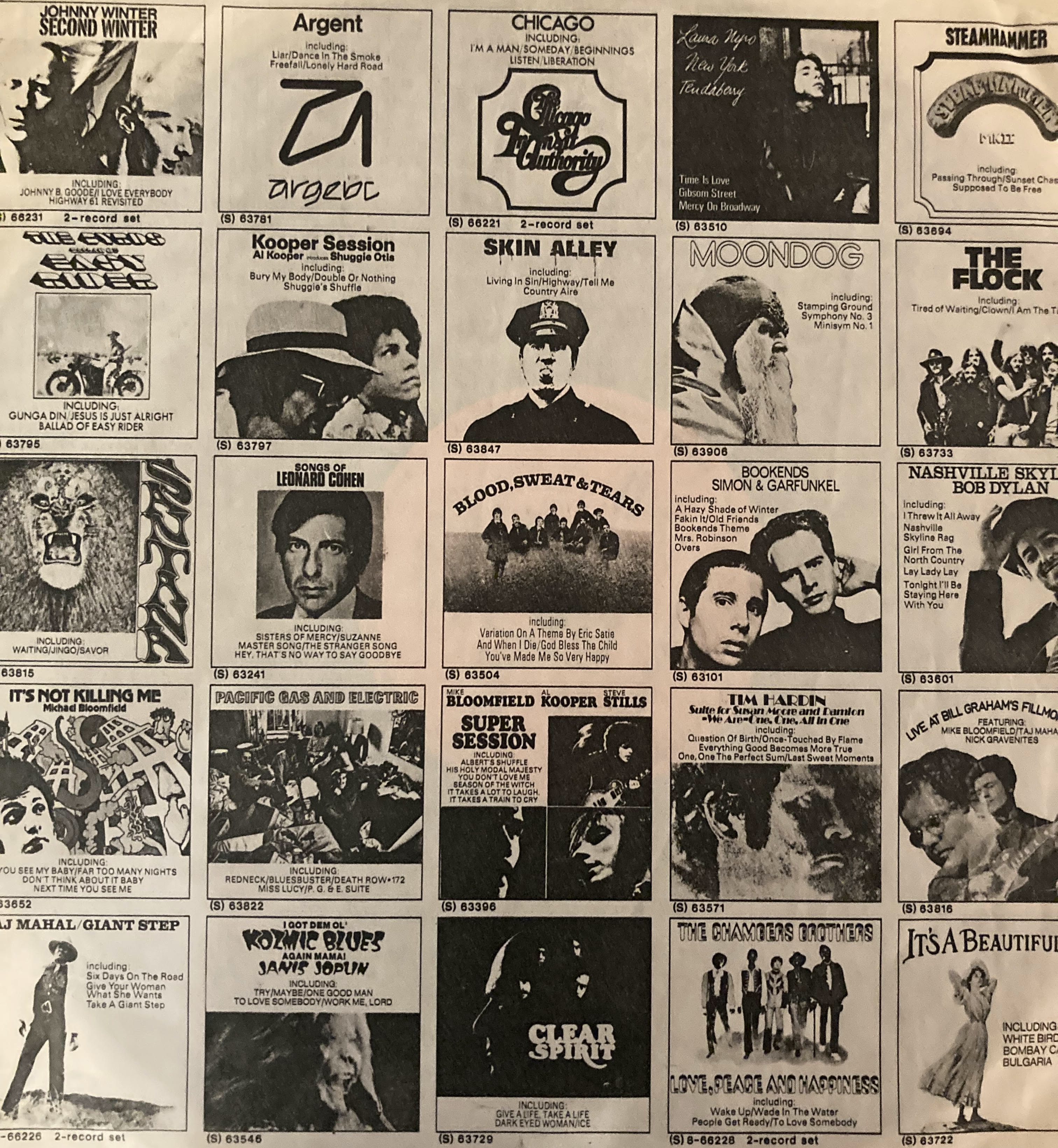 That orange CBS label, so basic and so redolent of an exotic, limitless world way out there. And the inner sleevs, with its thumbnails of albums by names I’d never heard of, like