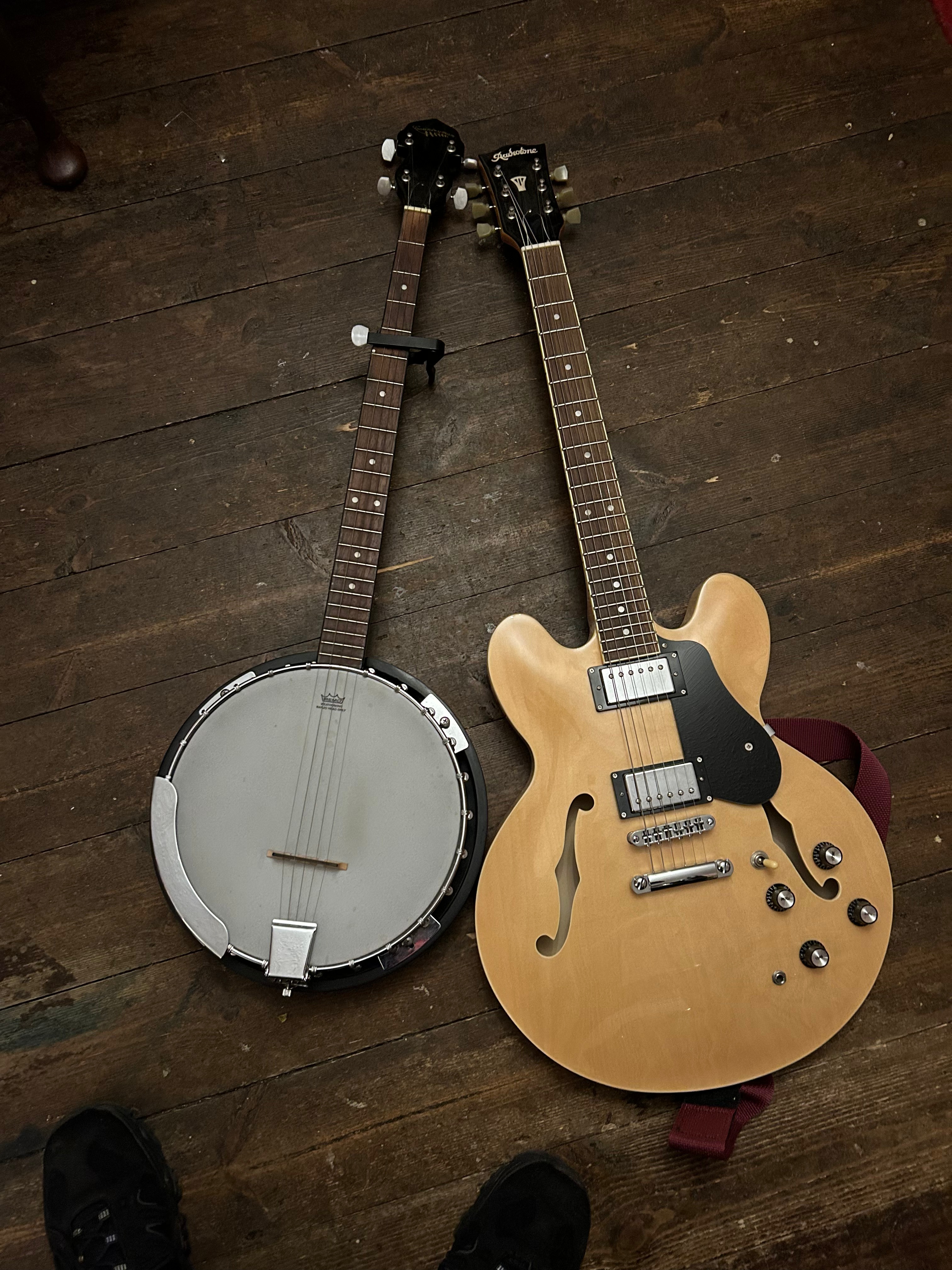 Well, I say ‘bought’. What actually happened was a sort of enactment in fiscal terms of a banjoist joke (how do you tune a banjo? A hatchet; there are millions more). I was keen to buy a rather lovely Gibson 335 copy (Radiotone, originally a Czech brand but made, as everything is nowadays, in China) and the Facebook seller decided to include a banjo in the deal. He threw it in. (What, you mean he just threw it…)