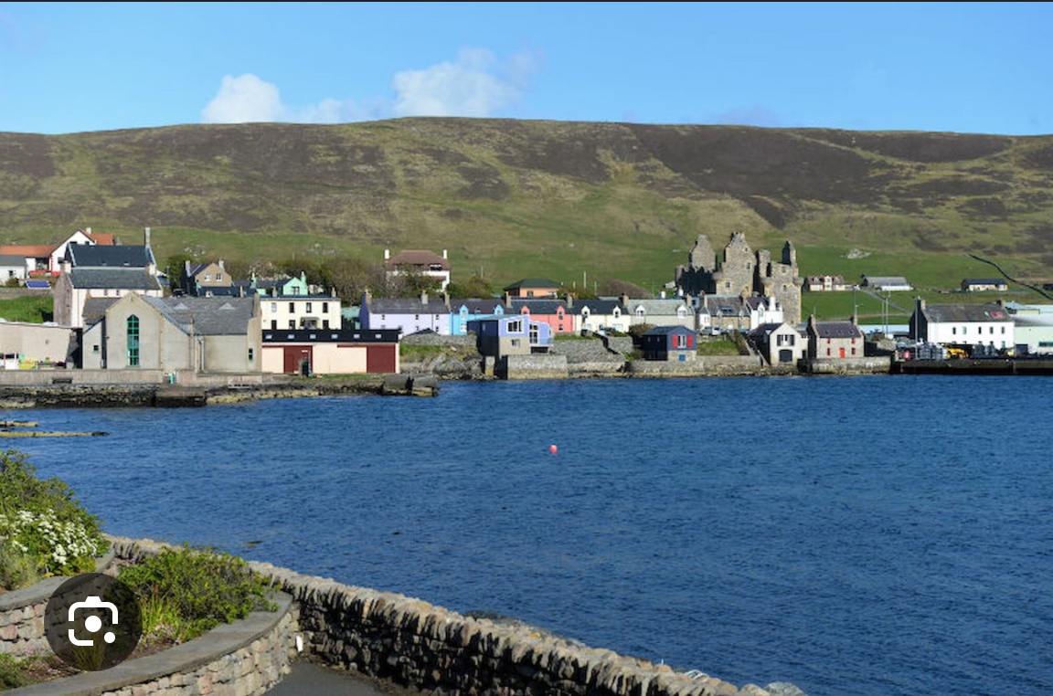 After a few minutes Gus began his bombing run over Scalloway, getting perilously close, Mary thought, to stalling speed as he heaved a couple of bags of flour at the shrieking crowd of elderly Shetland Bus celebrants on the ground. As the flag atop Scalloway Castle passed at eye level, she did wonder if they were just a tad low. They turned south for Fair isle, and Mary could swear at least two of the party were now lying prostate on the ground. The birthday lunch was probably for one of the century-old widows of Norwegian Shetland Bus veterans who had settled Shetland after the war. She hoped they were all right.