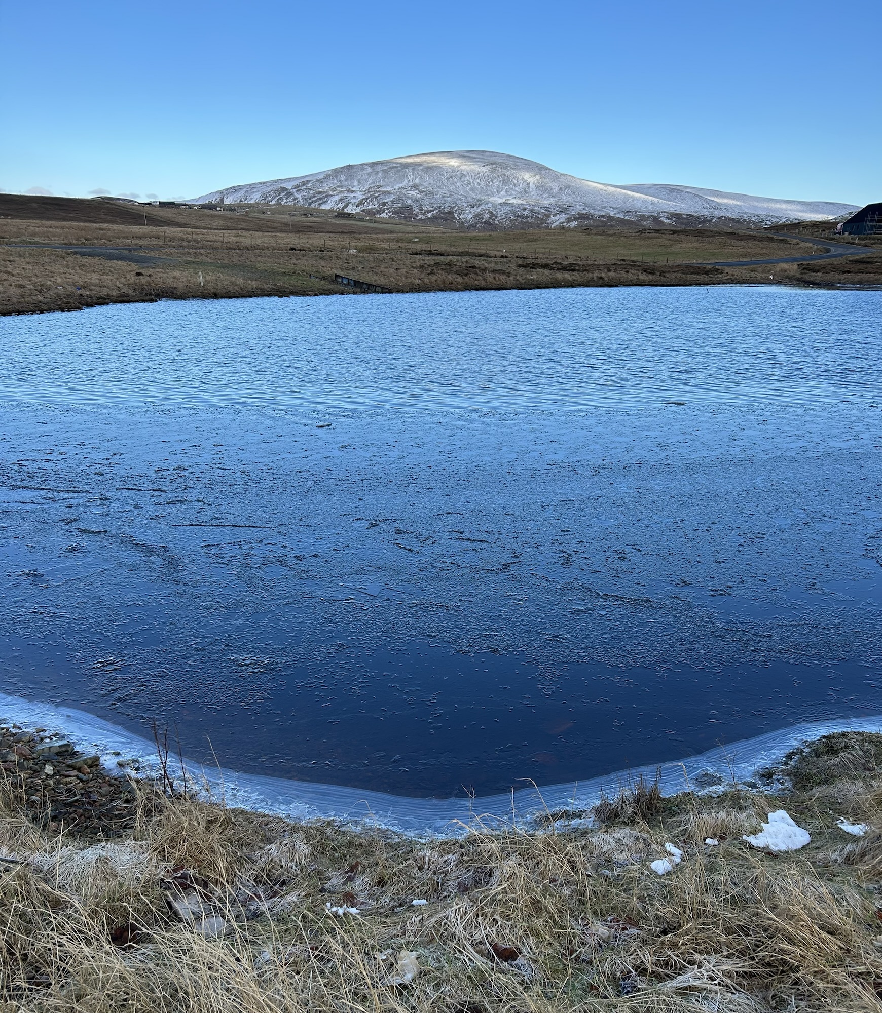 At last, a break in the weather. 10 days of gales, fierce before that, more grim stuff to come. But a lovely calm, cold morning and consequently a peaceful dog who just wants to sniff along the Urafirth beach.